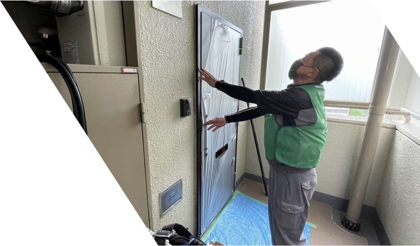 私は工事責任者として、協力会社と連携しながら各住戸の扉の採寸・取り付けを行いました。この団地は築年数が経っており住戸ごとに微妙な歪みがあったので、居住者様と工事日程を調整しながら対応することが求められていました。